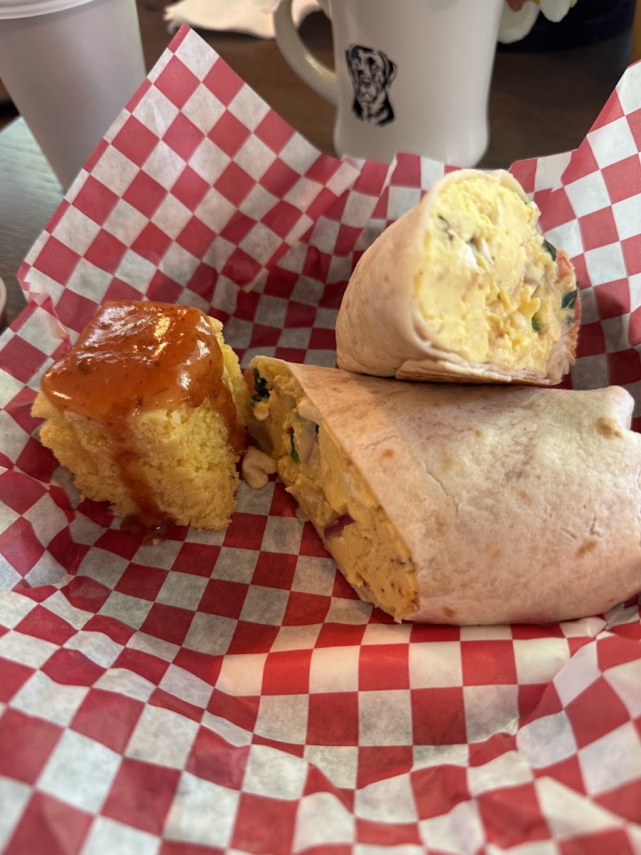 Such a cute place and great vibe! We ate inside, then finished our coffee on the patio. Great music playing. Food pretty good overall. Had breakfast and had a scramble, avocado toast and biscuits and gravy. While my scramble was good, the avocado toast looked awesome and I saw someone with the breakfast sandwich, which looked awesome. You order at the counter, which isn't what I was expecting but it worked out well and food came out quickly. Highly recommend!